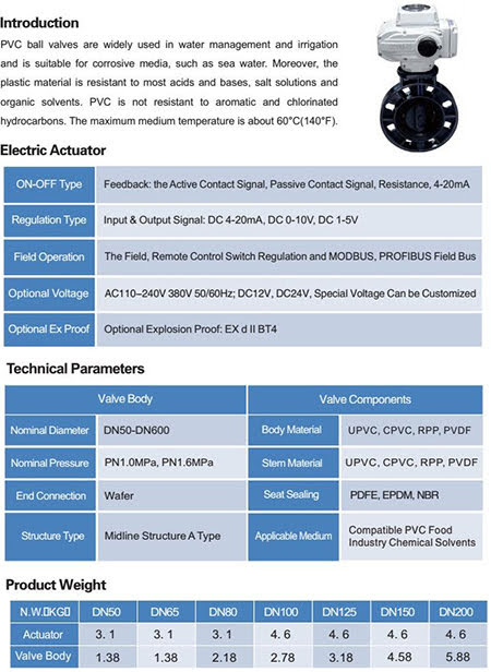 มอเตอร์วาล์วผีเสื้อ DN200 8″ UPVC Motorized Electric Butterfly Valve Plastic, EPDM Sealing แรงดัน 12V, 24V, 220V, 380V (สินค้า Pre-Order)